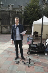 La Voix Haute, retient l’attention de la région qui invite le comédien à son Festival de l’Excellence Normande (FENO) au Parc des Exposition de Caen en avril 2019. Nous avons été surnommé “LA BOITE BLEUE” par les visiteurs et nous avons choisi de garder le nom car une boite possède ses surprises à l’intérieur (comme le travail de la création de spectacle et les émotions apportées aux spectateurs).